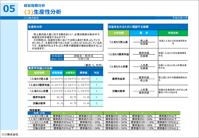 つまり、経営資源(ヒト・モノ・カネ)をいかに効率的に使用して付加価値を生み出したか、従業員や設備などをいかに効率的に運用できているかを見る分析です。
