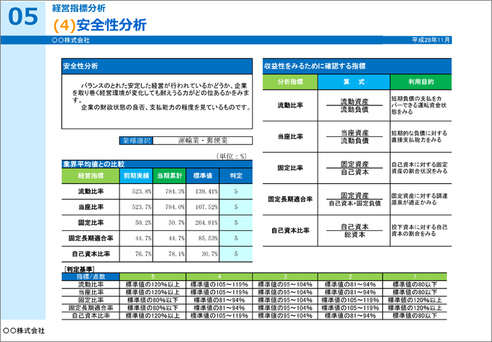 実数分析では、仮に、経営成績の良否の判定を同業他社と比較しようとした場合、業種別の同業他社平均値と比較することになりますが、会社の歴史も違い、また、社員数も異なるため、単純に実数を並べても比較しにくいところがあります。